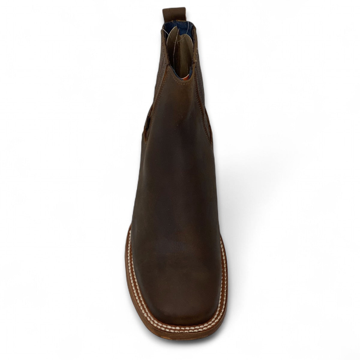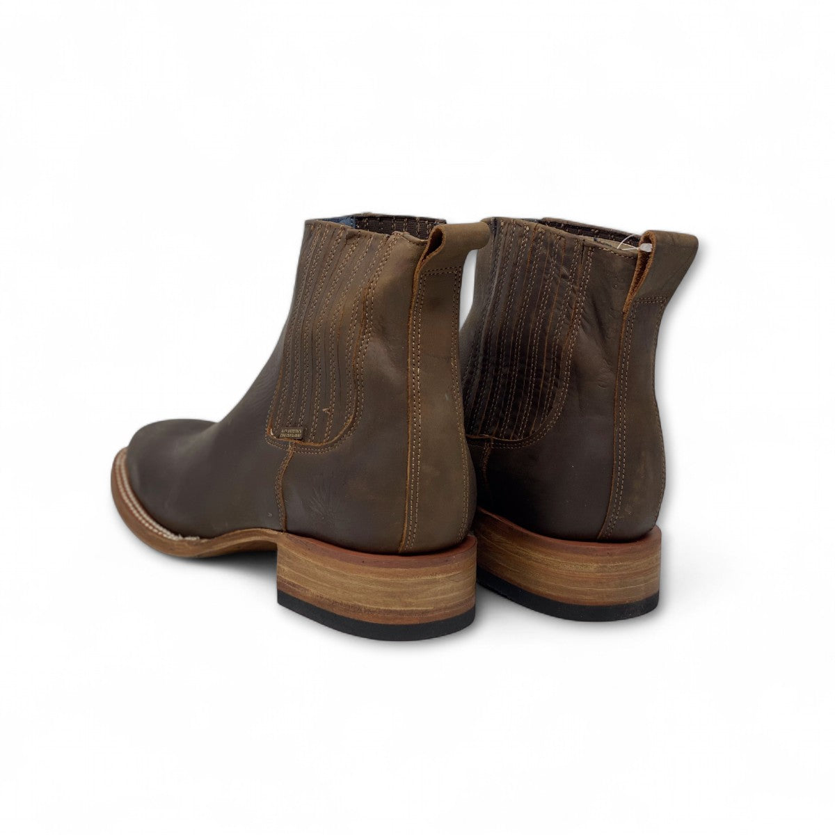 Suela de piel con detalles auténticos: Una suela de cuero cosida que no solo es duradera, sino que también tiene grabados de estrella y un logo que añaden un toque artesanal y único.